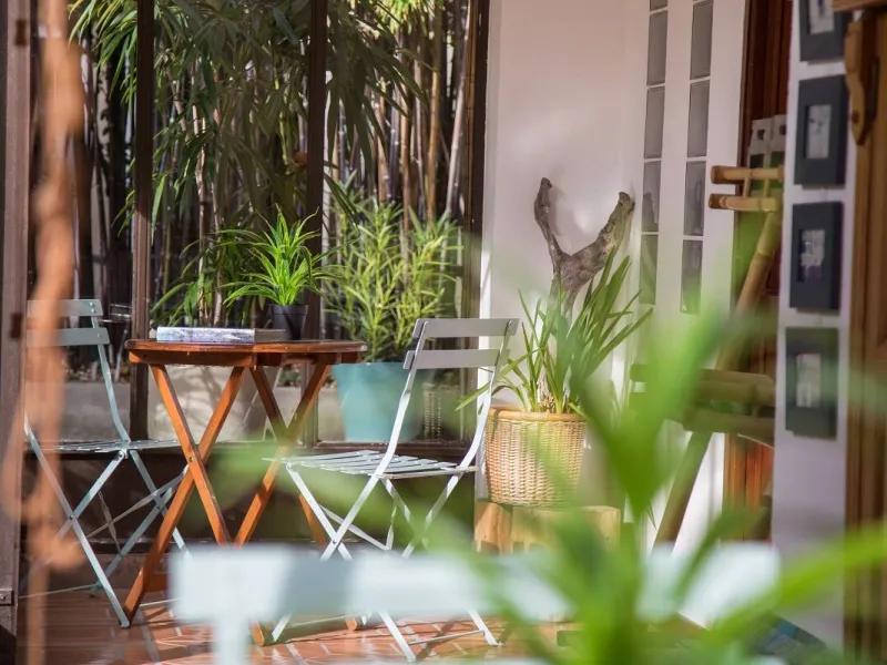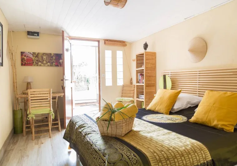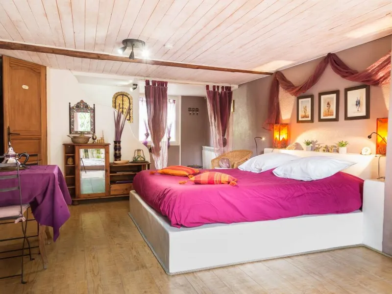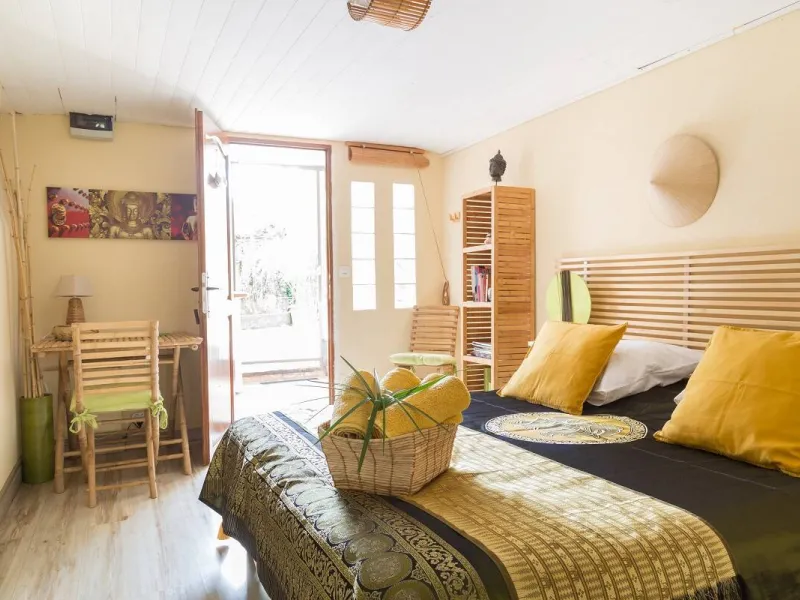 5 themed rooms in an exotic garden, 5 minutes' walk from the town center.Facilities include an above-ground swimming pool, ping-pong table, bike/motorcycle storage and kitchen.