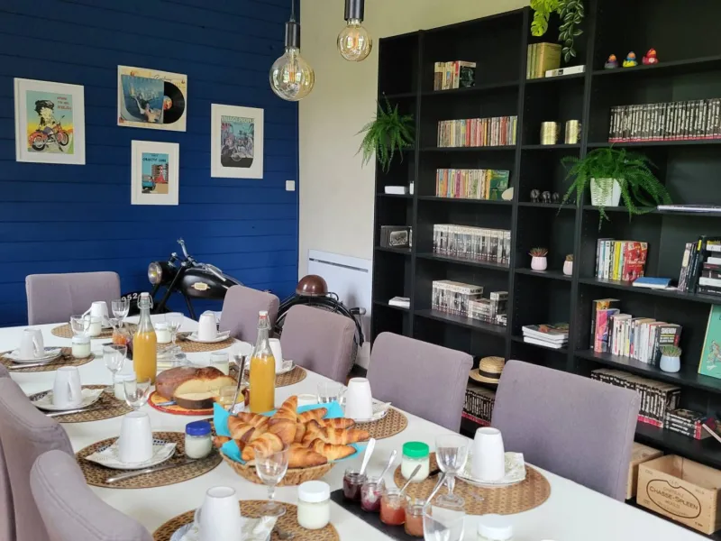 Every morning, a generous breakfast is served in the dining room or on the terrace. It features local and homemade products: jams, honey from the garden, brioches, yoghurts, fresh fruit juices and hot drinks.