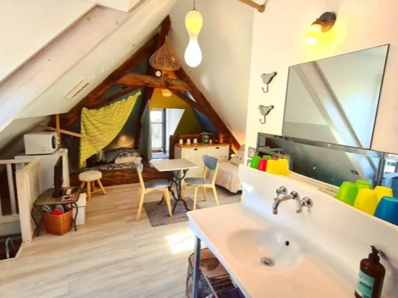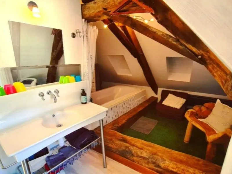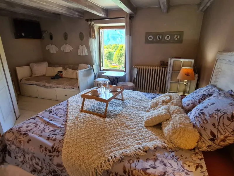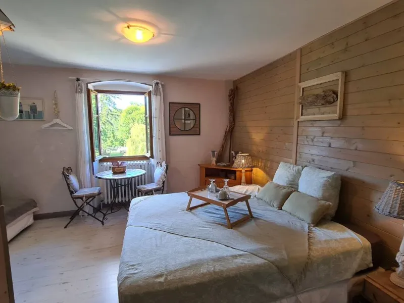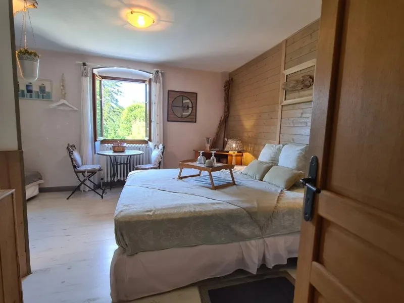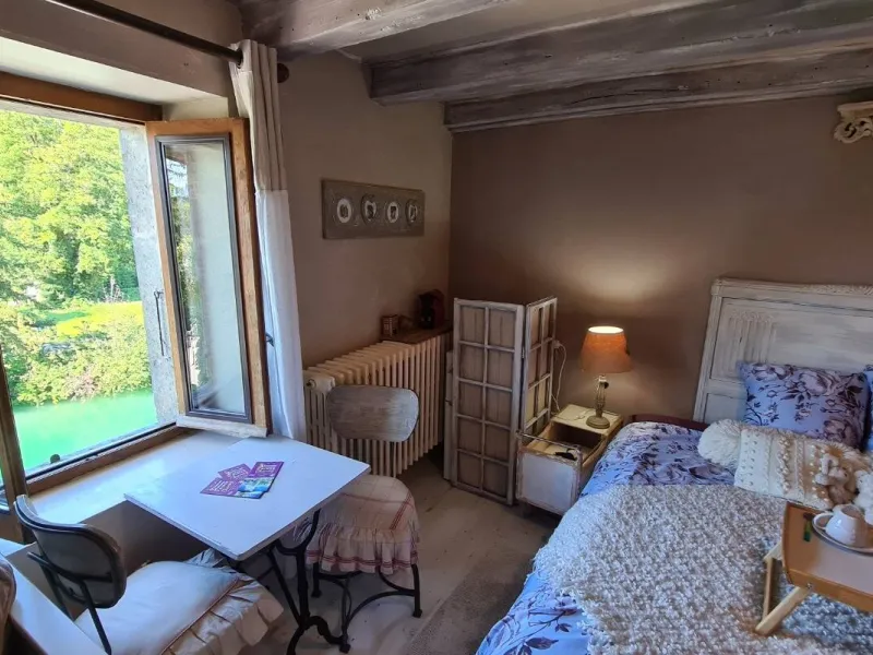 Five beautiful rooms, totally renovated, open their door in this former post of the eighteenth century in the heart of a beautiful village called Little Venice Savoyard Chanaz. A very charming place, between the Rhone and the Lac du Bourget, crossed by the channel Savière. Four bedrooms, four different themes spread over 2 floors. ROOM AS A LETTER TO THE POST: for 2/4 people. Room more masculine and industrial relation with the old Post Office building. 2 beds 90 twin, 2 beds 1 pers., Shower room, WC. Each room has a mini fridge, a microwave, a kettle and a TV for your comfort. Tea, coffee and tea are available. Free wifi. Common living room and terrace on the ground floor. Potential host tables. Free parking.Localisation