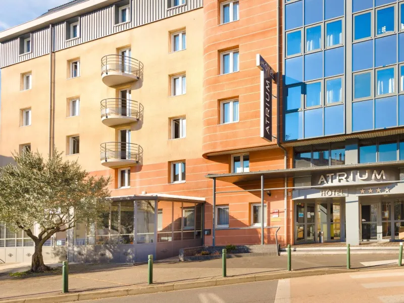 The Atrium Hôtel is located in a quiet street, close to the bus station, the Valence Ville train station, the historic center and shops, cinemas, theaters and the Valence Exhibition Center.The hotel offers 57 comfortable rooms, ranging in size from 18 to 30 m², including 3 rooms for people with reduced mobility and 11 duplex rooms, particularly suited to families with children.