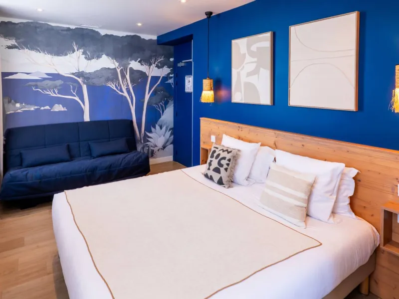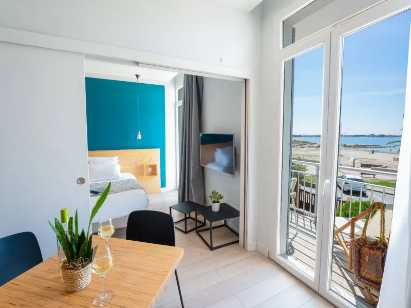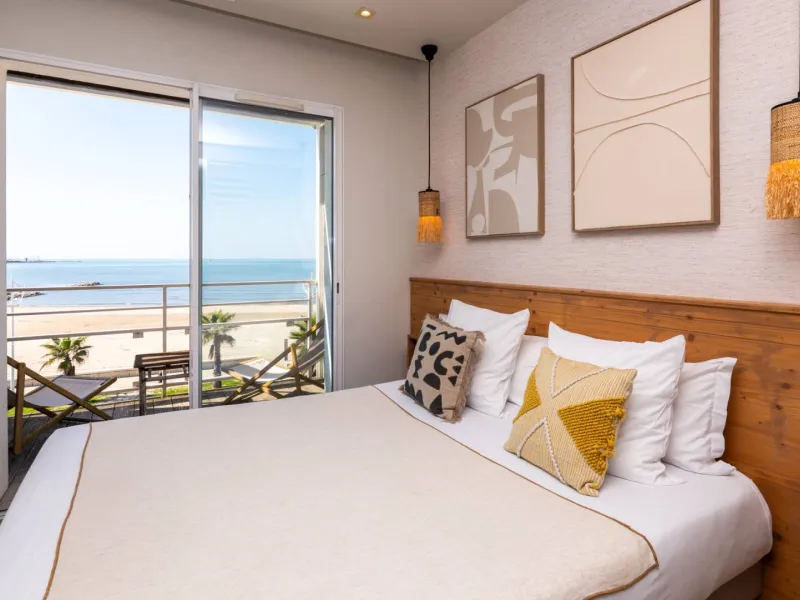 Nos chambres tout confort font écho au monde marin avec leur décor épuré aux notes boisées. Panorama d’exception depuis le balcon de votre chambre face à la belle bleue ! Autonomie, confort et services d'un hôtel, avec la possibilité de location d'appartements dans des résidences proches de l'hôtel, tous face à la mer, avec terrasse.Nouveau concept pour une nouvelle décoration !