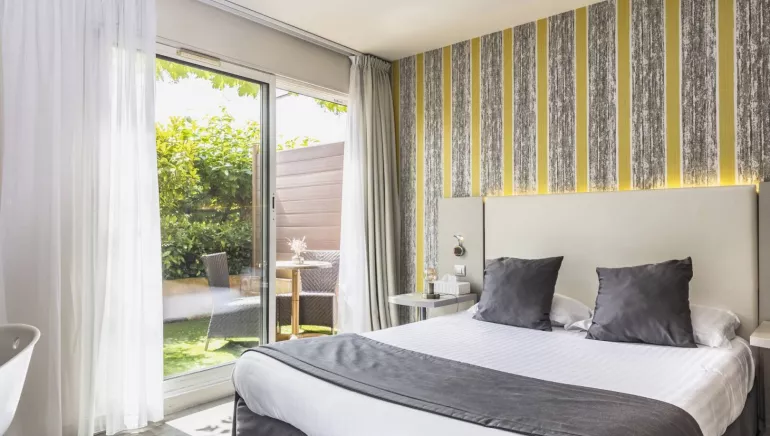 Located in the heart of the village of Charmes-sur-Rhône, this hotel-restaurant is reborn not far from the sarcophagus of the Roman senator Alethius. Stéphanie and Olivier welcome you to the Carré d'Alethius in a completely renovated setting. Nine bright and colourful rooms, some with shaded terrace, are at your disposal for a restful stay. After a moment of relaxation in the reception lounge or in the green open-air patio, you will enjoy discovering the inventive cuisine of the owner.