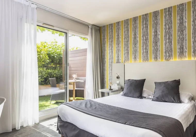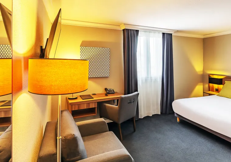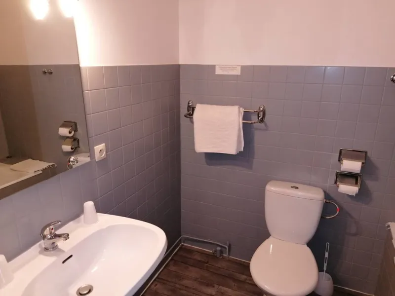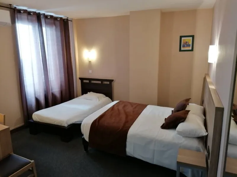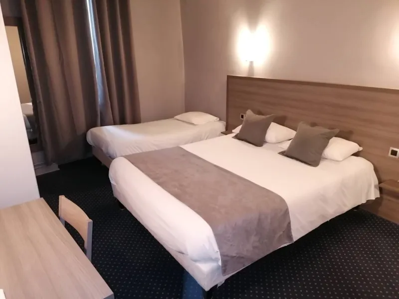Once you've parked in our private parking lot, you'll be able to discover one of our 28 rooms, served by a 3-storey elevator.Spacious and soundproofed, they offer all the comforts you need for a successful stay: shower or bath, desk and TV. Wifi access is available free of charge on request.