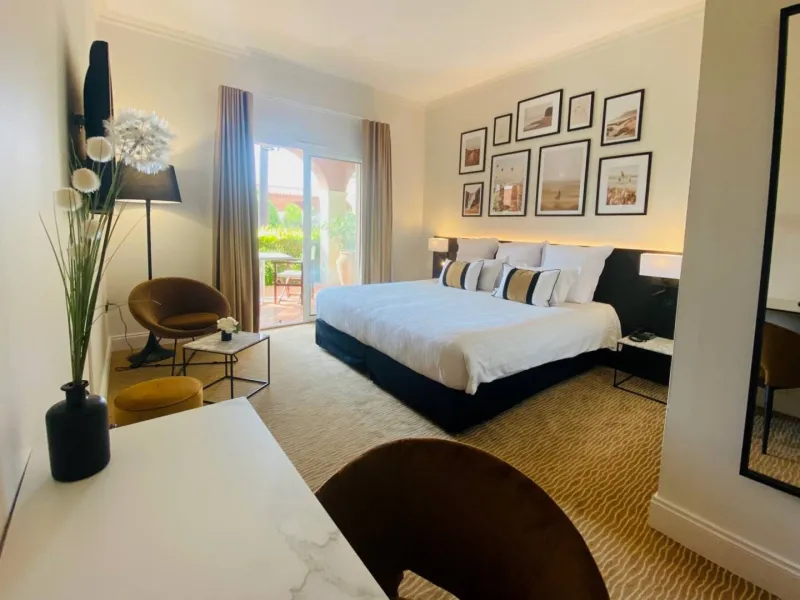 34 chambres et suites, avec terrasse privative ou balcon, vous offrent une vue agréable sur le jardin, la piscine ou le golf et tout le confort dont vous rêvez. Les chambres du Palmyra Golf Hôtel **** comprennent une télévision par satellite, une connexion Wi-Fi gratuite, ainsi qu’une salle de bains privative et une terrasse privée.