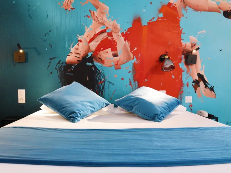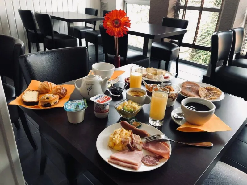 Enclosed garage with three electric charging stations.Free hotel parking.