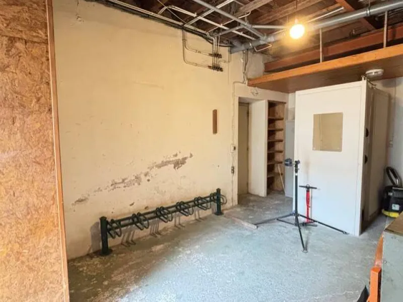 Secure bike storage with repair equipment and lockable lockers.