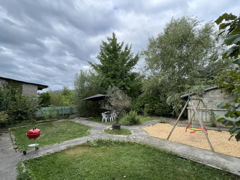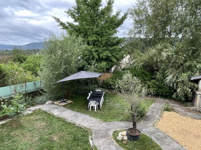 150 m² garden with outdoor furniture, parasol, barbecue and children's games (swings, trapeze, slide for toddlers, under parental supervision)