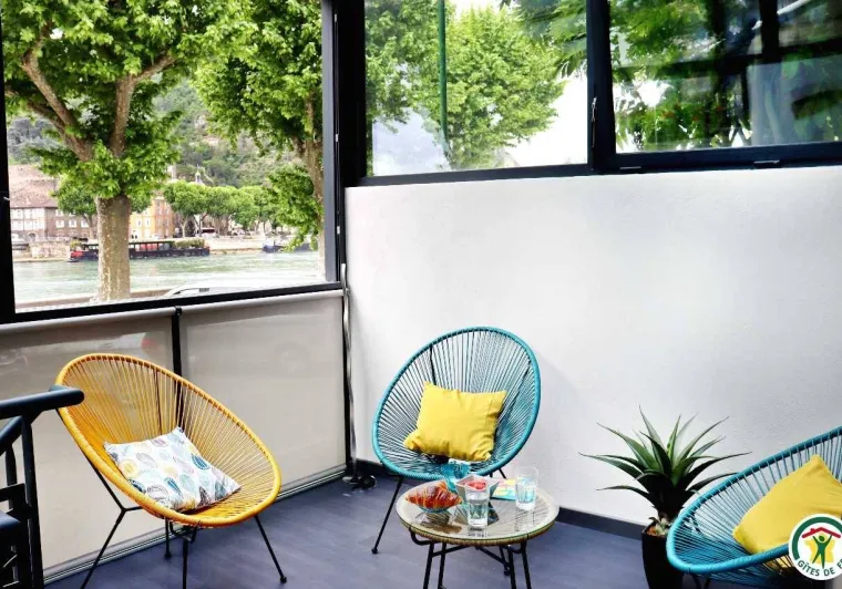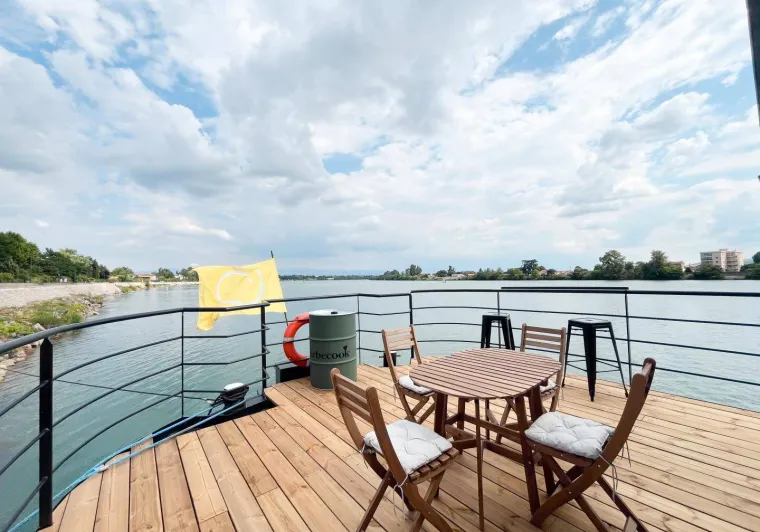 During your stay, you'll benefit from an all-inclusive service (bed linen, towels, cleaning). A 200-space public parking lot is also nearby. You'll be close to many restaurants and tourist attractions, and just a few meters from the Via Rhôna! Discover this exceptional, unusual gîte, a floating haven of peace with a breathtaking view over the town of Tournon. Moored on the left bank of the Rhône, in Tain l'Hermitage, this unusual holiday immerses you in a unique setting!