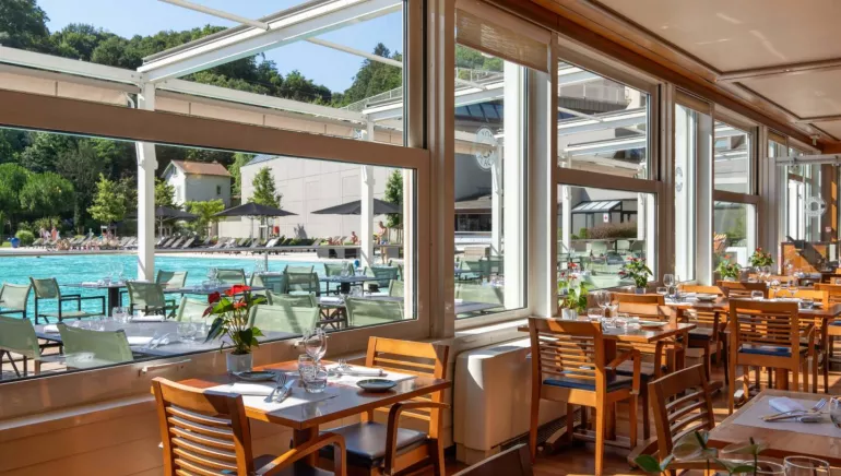 In fine weather, enjoy the exceptional atmosphere of the terrace by the Olympic-size swimming pool!