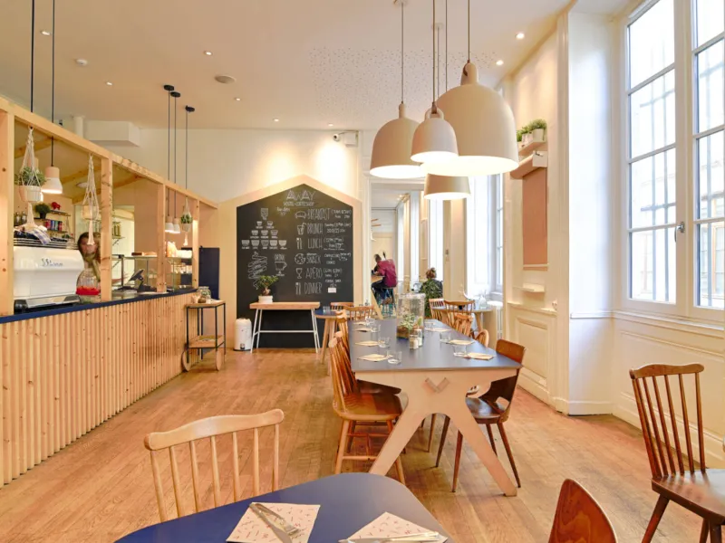 At lunch time, the chef, Megane, prepares good-value, well-balanced daily specials from local seasonal produce (tarts, savoury cakes, etc.).